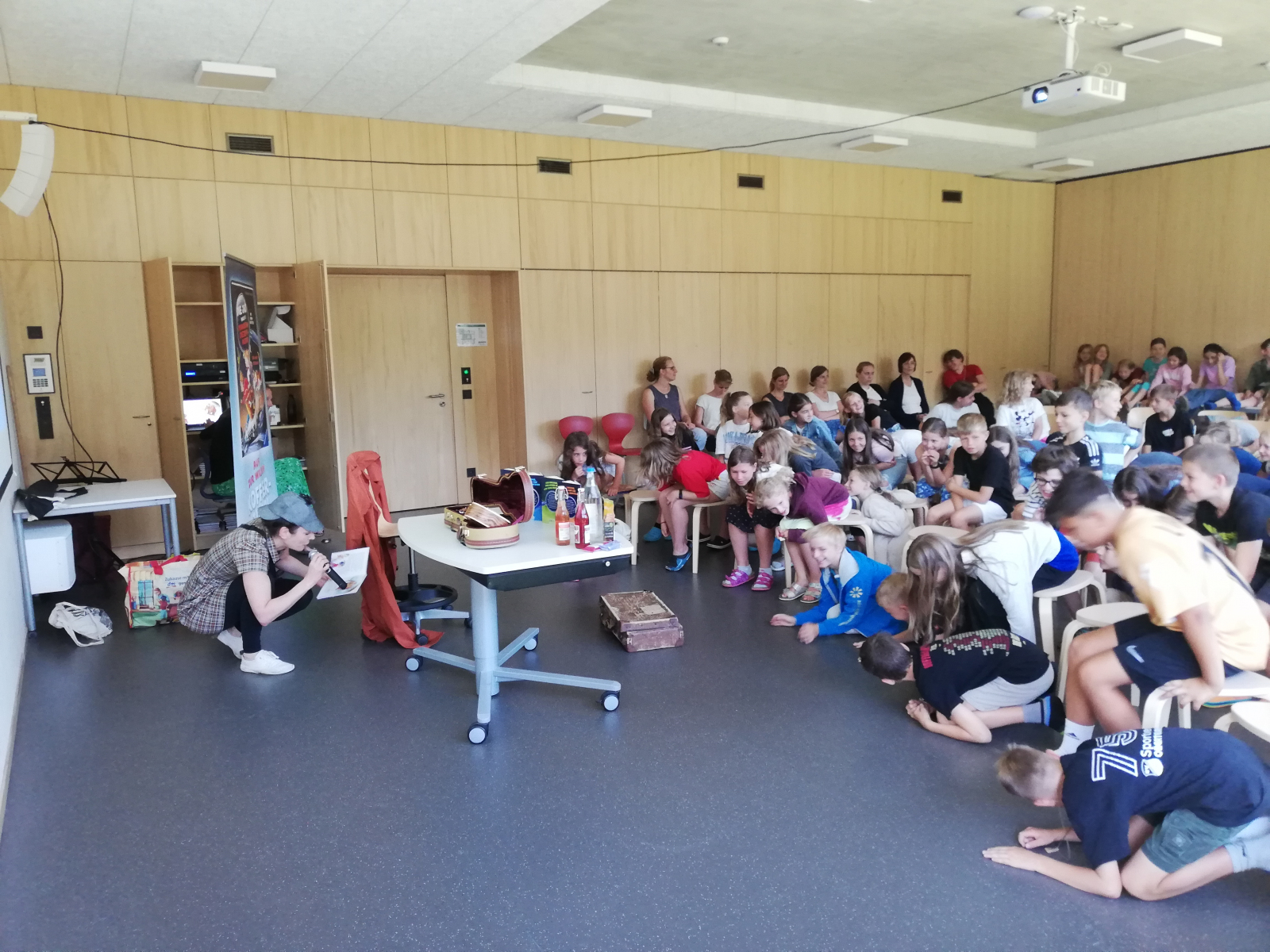 Habt ihr schon einmal vom trojanischen Mammut gehört? Kennt ihr die Besonderheit des magischen Stiftes? Wer sind Pfötchen, Brötchen und Sokrates und was hat es mit Kommissar Schnarch auf sich? Wer das wissen möchte, frägt am besten die Kinder der Teuringer-Tal-Schule. Die sind am Freitag, 14.7.23 nämlich alle zu Superdetektiven ausgebildet worden und zwar von Cally Stronk höchstpersönlich. Sie ist die Autorin der Reihe „Die Jagd nach dem magischen Detektivkoffer“ und hat unsere Grundschüler mit auf den „Goldraub im Museum“ genommen. Mithilfe der Kinder wurden eifrig Rätsel gelöst, gesungen, vorgelesen und visuell eine Reise durch die Geschichte gemacht. Alle waren mit Feuereifer dabei und lauschten angestrengt den Ausführungen der Autorin. Doch wer wissen möchte, ob der Goldschatz am Ende wirklich sicher versteckt war und ob die Ganoven tatsächlich überführt werden, der muss dann doch selber noch zum Buch greifen.