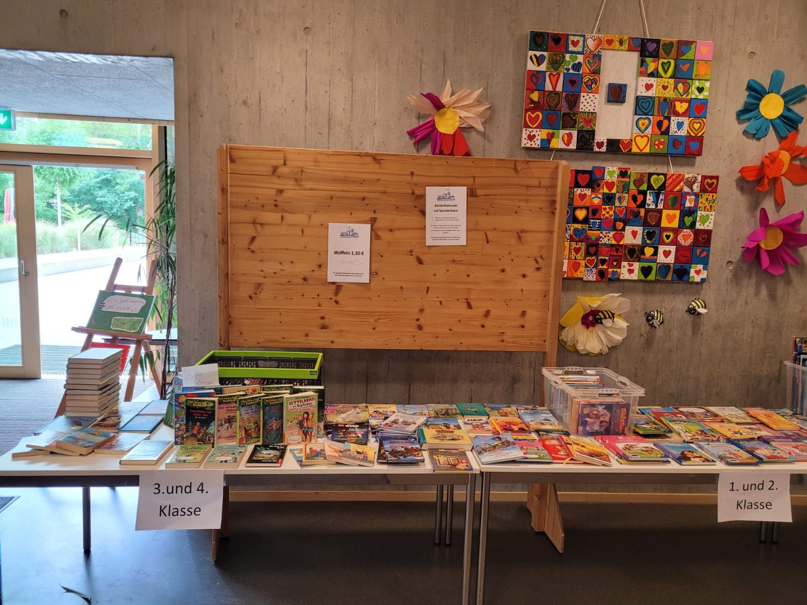 Der Förderverein beteiligte sich außerdem mit einem Waffelstand, dessen Duft viele Leckermäuler anzog, sowie mit einem großen Bücherflohmarkt, auf dem jede Menge ausgediente Bücher neue Besitzer fanden. Die Abgabe erfolgte auf Spendenbasis nach dem Prinzip stöbern, aussuchen, mitnehmen und dafür geben, was man kann oder möchte. So sorgten wir gemeinsam für mehr Lesefreude und Nachhaltigkeit.