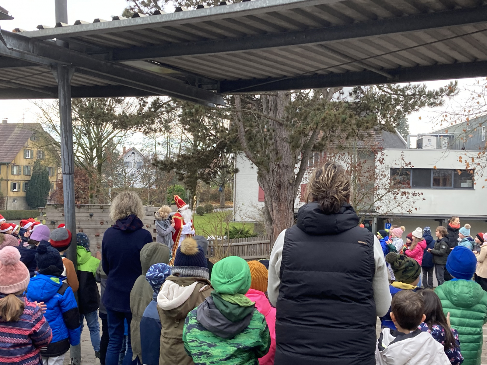 heißt es mittlerweile schon zum dritten Mal an der Teuringer-Tal-Schule. Leuchtende Augen blicken gespannt und ehrfurchtsvoll auf den Mann mit dem weißen Bart, der in seiner Kutsche vorgefahren kommt. „Lasst uns froh und munter sein“ schallt es vom Pausenhof, als der Schulchor mit Unterstützung aller Kinder dieses Lied zur Begrüßung anstimmt. Aber auch einige Klassen mit ihren Lehrerinnen haben sich ein tolles Programm einfallen lassen. So trägt die F1 ein Gedicht vor, F2 und F3 zupfen gemeinsam ein Lied und die 4b hat ein Rhythmical zu „Warten auf den Nikolaus“ einstudiert. Als dieser dann endlich sein goldenes Buch aufschlägt, lauschen alle aufmerksam seinen Lobesworten für die Teuringer-Tal-Schüler. Anschließend geht es wieder weiter mit liebevoll vorbereiteten Beiträgen. Die 3a gibt einen Weihnachtsrap zum Besten, welcher von einem Gedicht der 3b abgelöst wird. Den Abschluss macht die F5 mit ihrem Tüchertanz. Leider muss der Nikolaus viel zu schnell weiterziehen, aber nicht ohne noch jeder Klasse einen Sack zu übergeben. Den haben die fleißigen Helfer vom Förderverein wieder mit einem Schokonikolaus für jedes Kind sowie einem Geschenk für die gesamte Klasse bestückt. Erneut verspricht der Nikolaus den Kindern, im nächsten Jahr wiederzukommen. Dafür ein herzliches Dankeschön an Markus und seinen Kutscher Wolfgang!