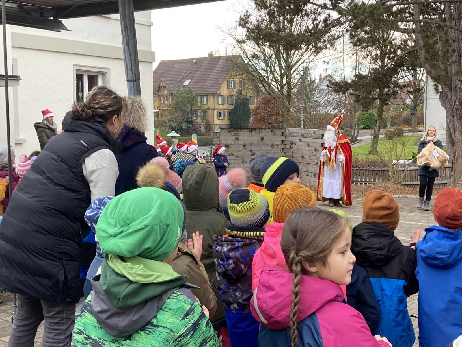 heißt es mittlerweile schon zum dritten Mal an der Teuringer-Tal-Schule. Leuchtende Augen blicken gespannt und ehrfurchtsvoll auf den Mann mit dem weißen Bart, der in seiner Kutsche vorgefahren kommt. „Lasst uns froh und munter sein“ schallt es vom Pausenhof, als der Schulchor mit Unterstützung aller Kinder dieses Lied zur Begrüßung anstimmt. Aber auch einige Klassen mit ihren Lehrerinnen haben sich ein tolles Programm einfallen lassen. So trägt die F1 ein Gedicht vor, F2 und F3 zupfen gemeinsam ein Lied und die 4b hat ein Rhythmical zu „Warten auf den Nikolaus“ einstudiert. Als dieser dann endlich sein goldenes Buch aufschlägt, lauschen alle aufmerksam seinen Lobesworten für die Teuringer-Tal-Schüler. Anschließend geht es wieder weiter mit liebevoll vorbereiteten Beiträgen. Die 3a gibt einen Weihnachtsrap zum Besten, welcher von einem Gedicht der 3b abgelöst wird. Den Abschluss macht die F5 mit ihrem Tüchertanz. Leider muss der Nikolaus viel zu schnell weiterziehen, aber nicht ohne noch jeder Klasse einen Sack zu übergeben. Den haben die fleißigen Helfer vom Förderverein wieder mit einem Schokonikolaus für jedes Kind sowie einem Geschenk für die gesamte Klasse bestückt. Erneut verspricht der Nikolaus den Kindern, im nächsten Jahr wiederzukommen. Dafür ein herzliches Dankeschön an Markus und seinen Kutscher Wolfgang!